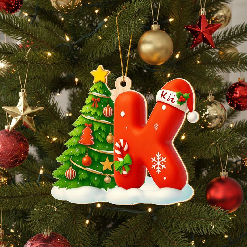 Personalized Christmas Tree & Letter Ornament | Custom Name A-Z Initial Holiday Decor