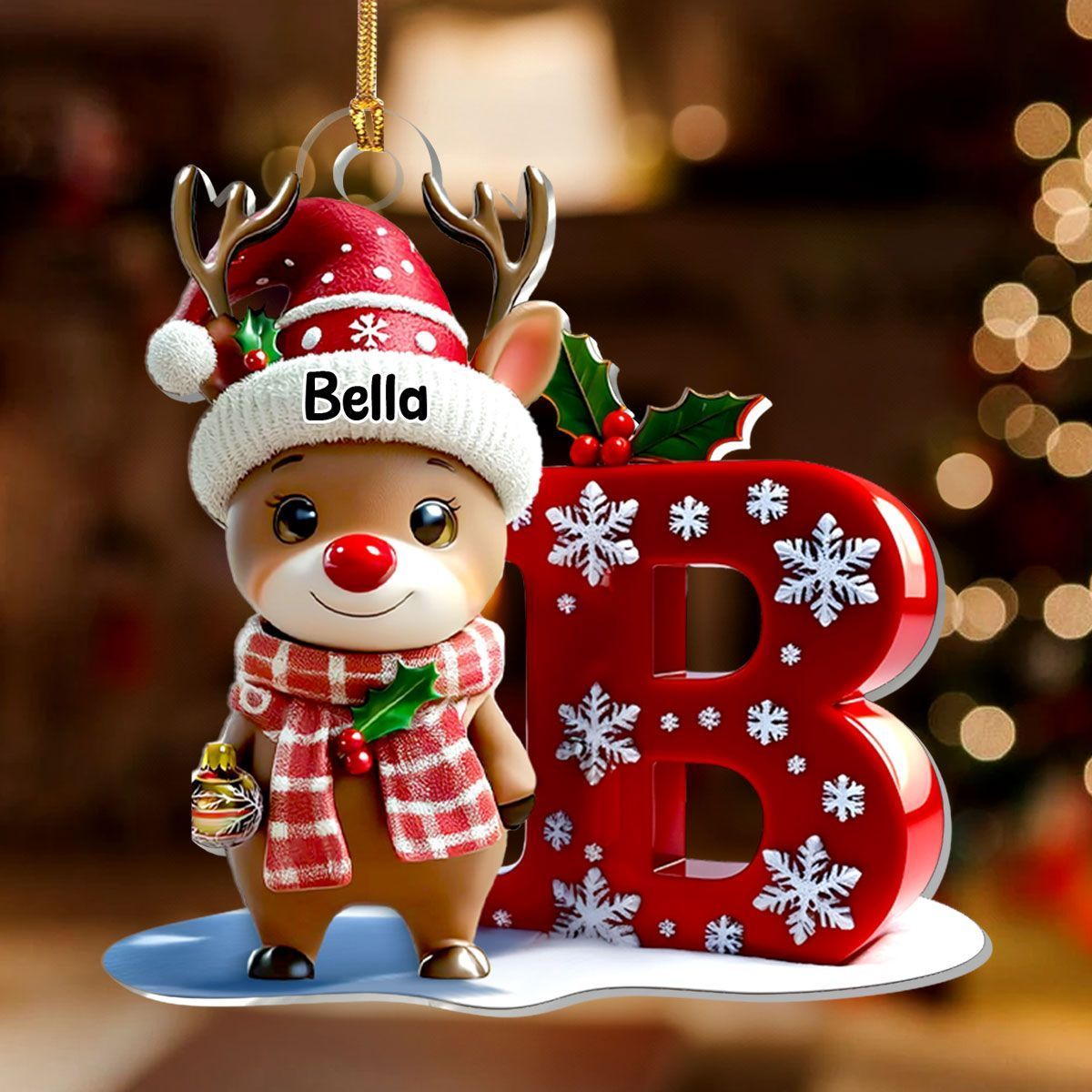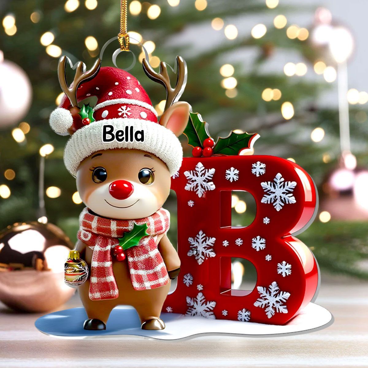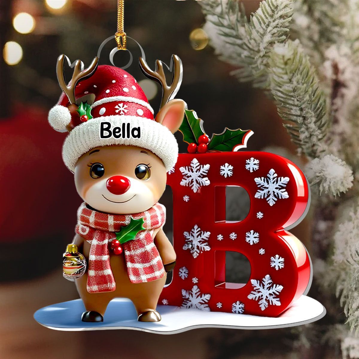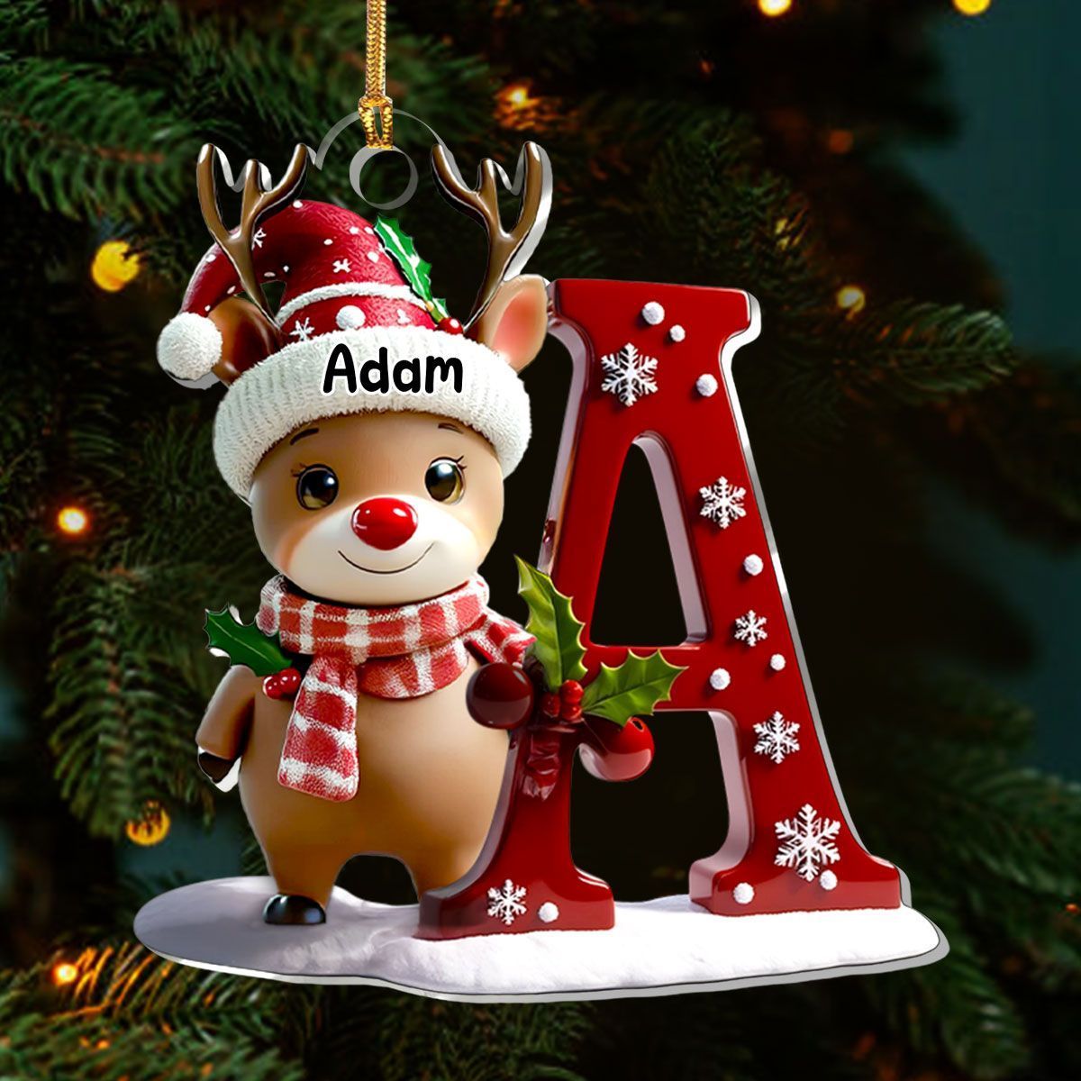 Christmas Reindeer Alphabet - Personalized 1-Layer Acrylic Ornament